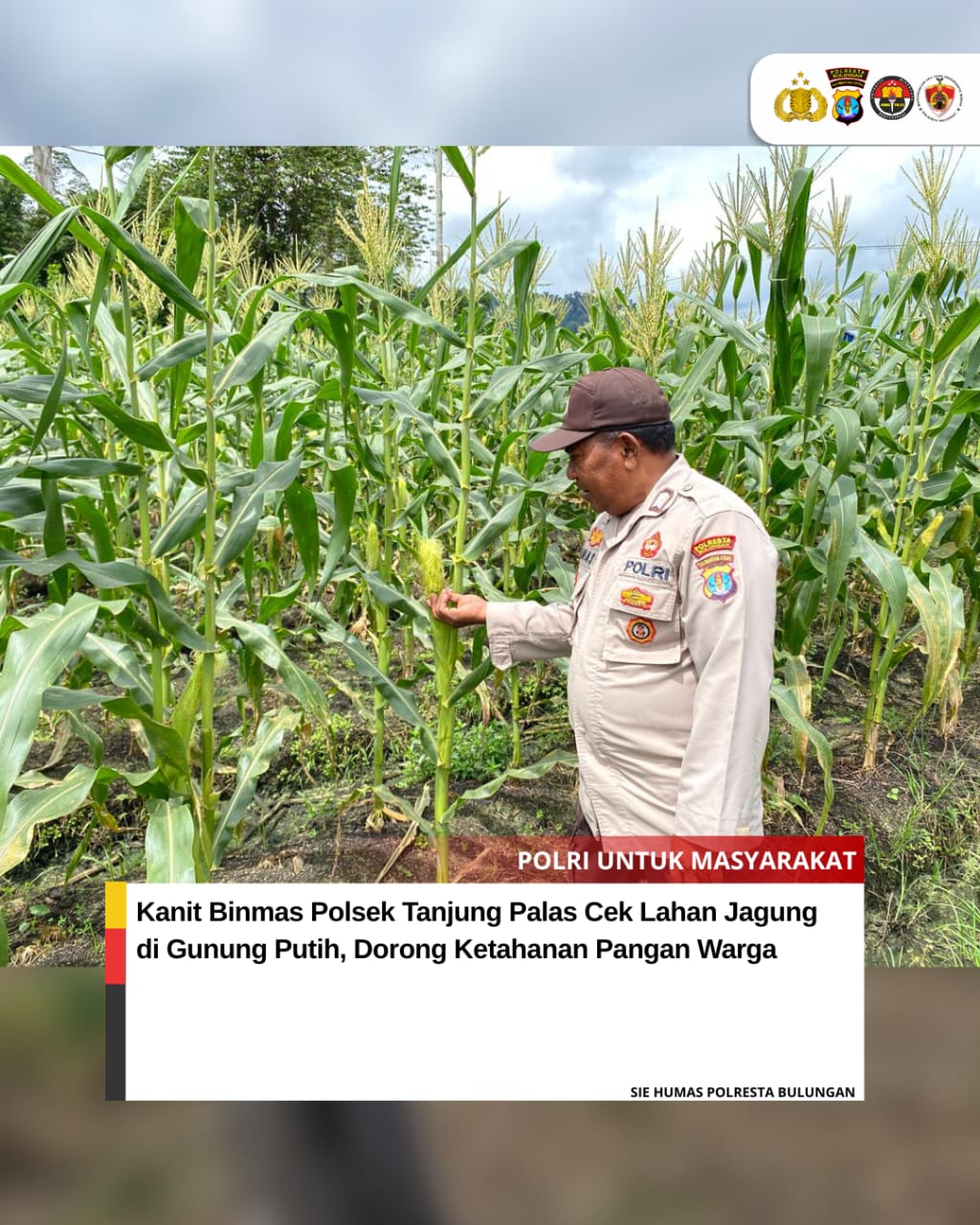 TANJUNG SELOR – Upaya mendukung ketahanan pangan terus dilakukan jajaran kepolisian. Kali ini, Kanit Binmas, Abdu Anas, melaksanakan pengecekan lahan jagung milik warga di Desa Gunung Putih.