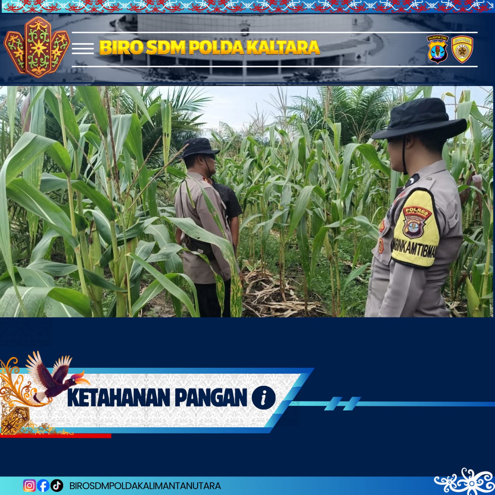 Bhabinkamtibmas Polres Tana Tidung melaksanakan kegiatan sambang dan monitoring ketahanan pangan masyarakat dengan mengunjungi lahan pertanian jagung milik warga.