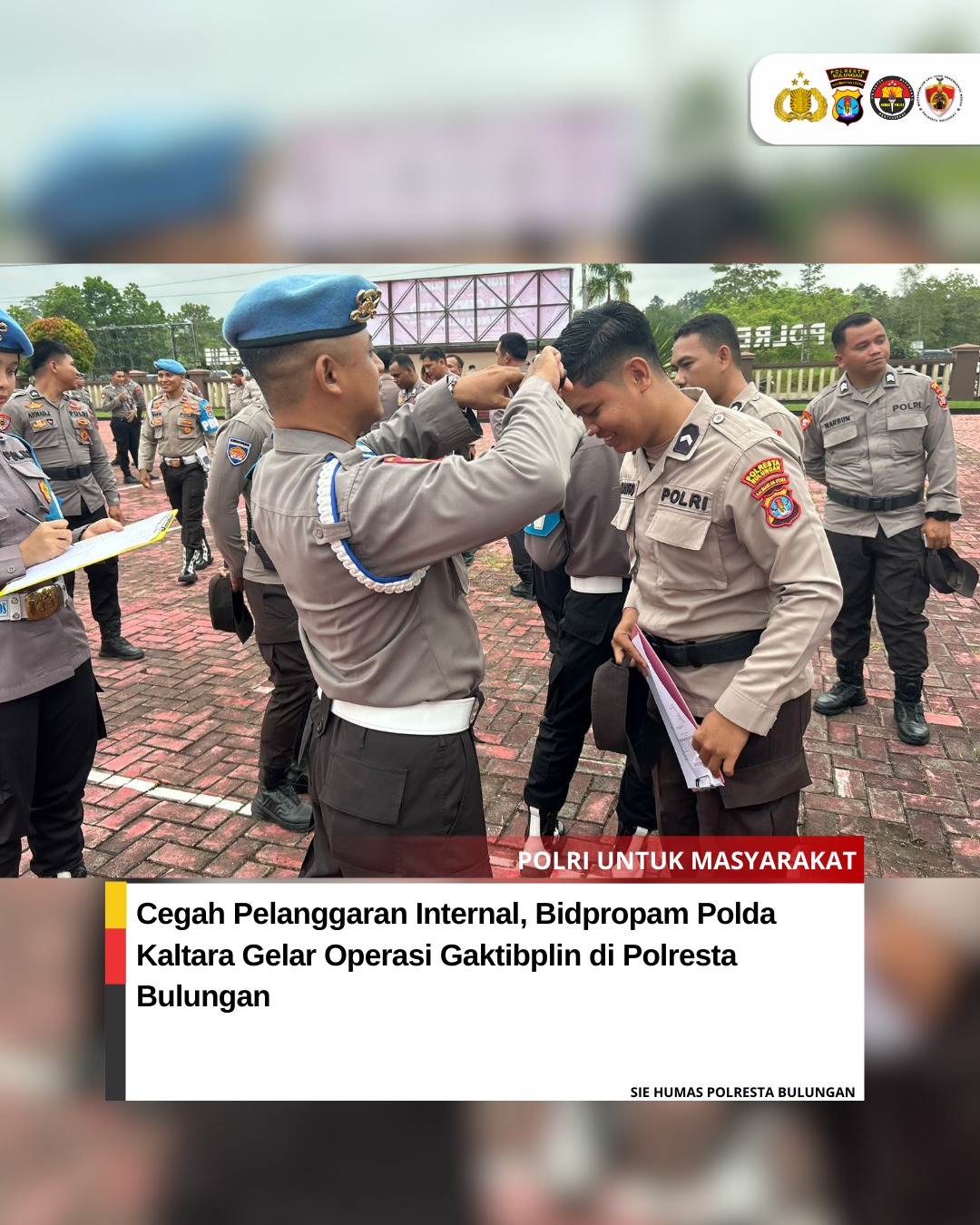 TANJUNG SELOR, Polda Kaltara, Polresta Bulungan – Dalam upaya meningkatkan disiplin serta mencegah terjadinya pelanggaran internal, Bidang Profesi dan Pengamanan (Bidpropam) Polda Kalimantan Utara melaksanakan Operasi Penegakan Ketertiban dan Disiplin (Gaktibplin) terhadap personel Polresta Bulungan, Senin (26/1/2026).
