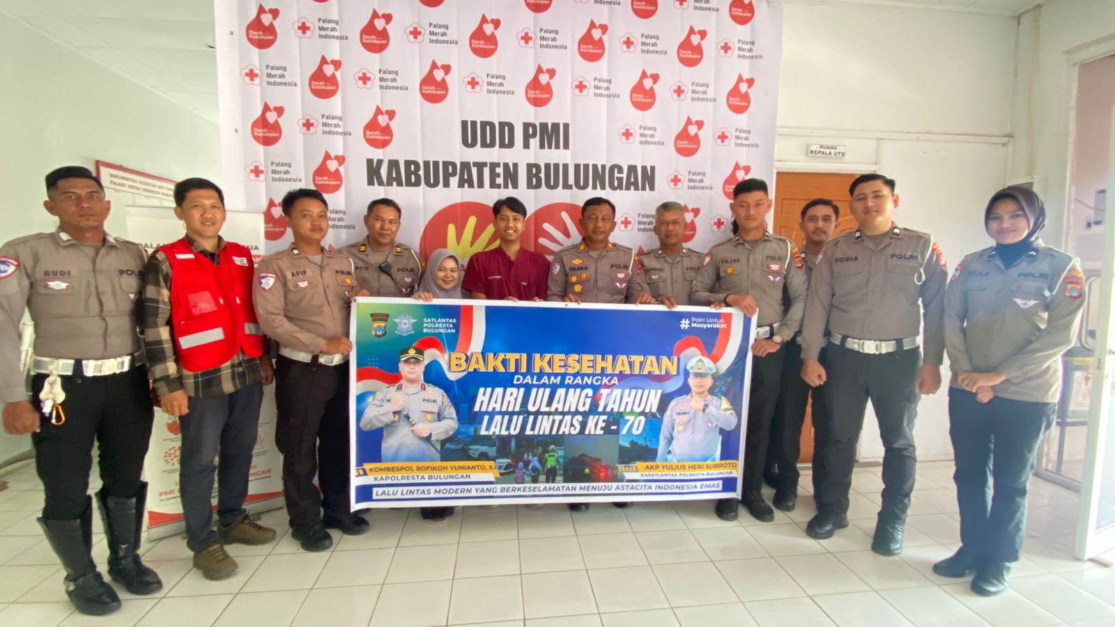TANJUNG SELOR, Polda Kaltara, Polresta Bulungan – Dalam rangka memperingati Hari Ulang Tahun (HUT) Lalu Lintas ke-70, Satuan Lalu Lintas (Satlantas) Polresta Bulungan menggelar kegiatan donor darah di Kantor PMI Kabupaten Bulungan, Selasa (9/9/2025).