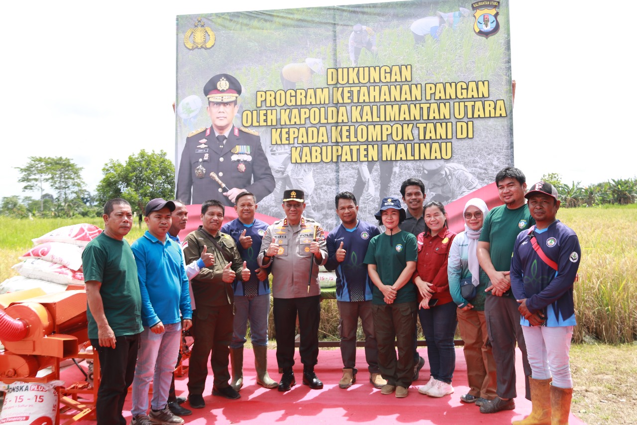 TRIBRATANews, Malinau – Kebahagiaan terpancar dari wajah para anggota Kelompok Tani Manggris Lestari di Desa Malinau Kota setelah kunjungan Kapolda Kalimantan Utara, Irjen Pol Hary Sudwijanto, S.I.K., M.Si., pada Selasa, 7 Januari 2025. Kunjungan ini sekaligus menjadi momen berharga dengan adanya bantuan berupa mesin perontok padi, pupuk, dan racun tanaman yang diserahkan langsung kepada kelompok tani. Rabu (08/01/2025).