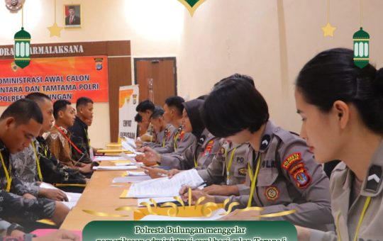 Polresta Bulungan menggelar pemeriksaan administrasi awal bagi calon Taruna/i Akademi Kepolisian (Akpol), Bintara, dan Tamtama Polri Tahun Anggaran 2025 pada Senin, 10 Maret 2025. Kegiatan ini merupakan tahap awal seleksi penerimaan calon anggota Polri yang berlangsung dengan prinsip Bersih, Transparan, Akuntabel, dan Humanis (BETAH).