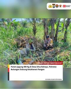 TANJUNG SELOR, Polda Kaltara, Polresta Bulungan – Panen jagung dalam rangka mendukung program ketahanan pangan sebagaimana Asta Cita dilakukan di bawah naungan Polsek Tanjung Palas, Polresta Bulungan, Kamis (28/8/2035). Setidaknya, terdapat 400 kilogram hasil panen jagung dari lahan kelompok tani Kembang Baru.