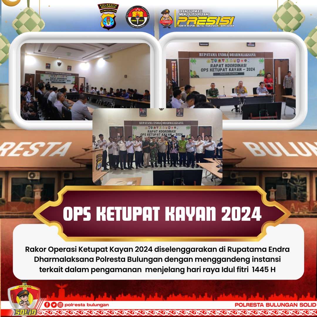 Adapun, lanjutnya, jaminan keamanan itu sendiri dengan diadakannya 13 posko pengamanan dan pelayanan di wilayah hukumnya. Termasuk, dengan menyiagakan 130 personel gabungan. Dengan harapan selama Operasi Ketupat berjalan efektif. “Kegiatan operasi ini akan berlangsung selama 13 hari dari tanggal 4 s.d. 16 April 2024. Tentunya, aspek pengamanan akan terus ditingkatkan hingga akhir operasi,” ungkap Kapolresta Bulungan.