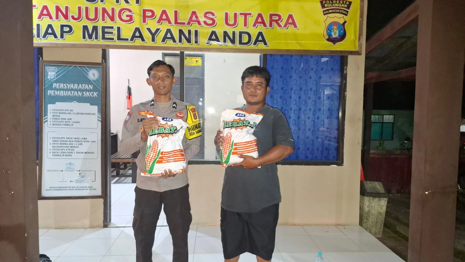 TANJUNG SELOR – Polsek Tanjung Palas Utara melaksanakan kegiatan pendistribusian bantuan benih jagung Hebat dari Dinas Pertanian Kabupaten Bulungan kepada petani non-CPCL di Desa Karang Agung, Kecamatan Tanjung Palas Utara, Kabupaten Bulungan.