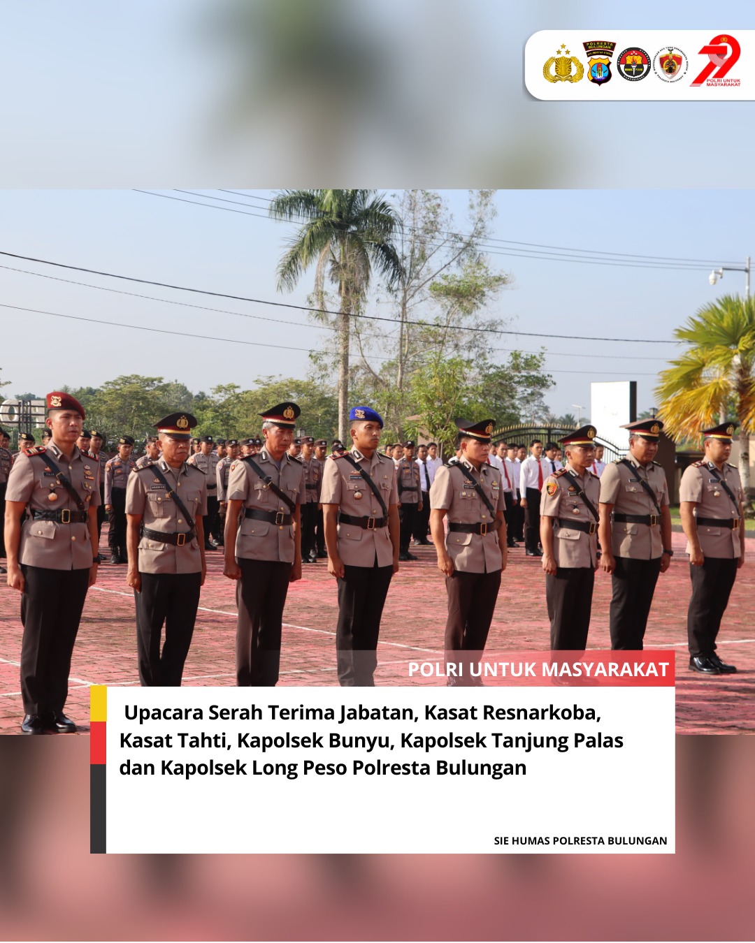Kapolresta juga menyampaikan apresiasi dan ucapan terima kasih atas dedikasi para pejabat lama selama bertugas di lingkungan Polresta Bulungan.