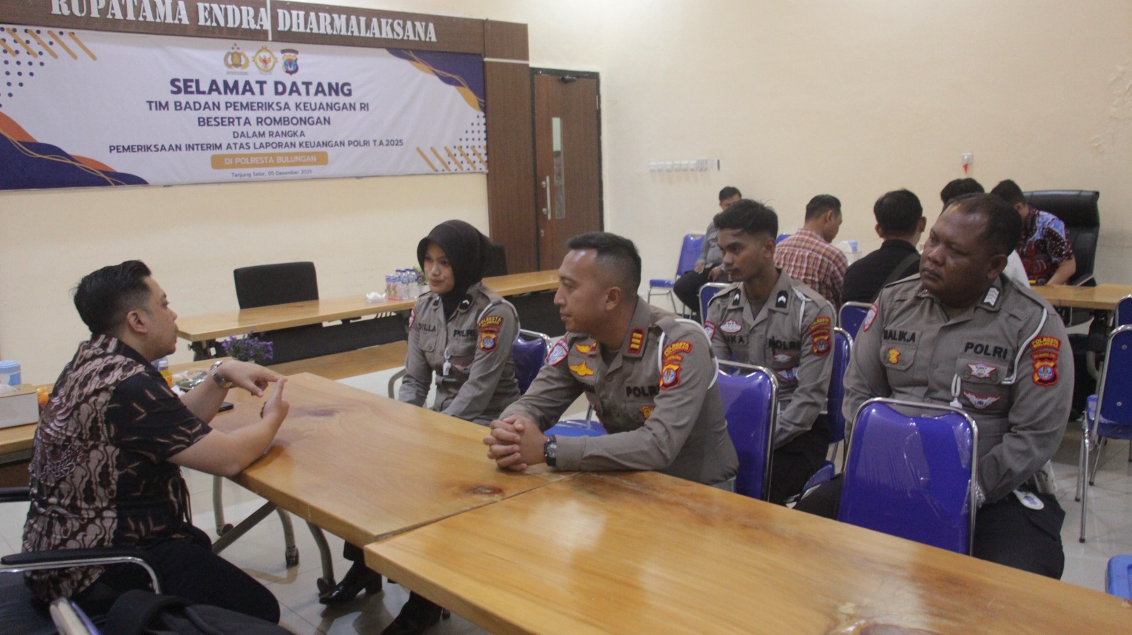 TANJUNG SELOR – Pelaksanaan kegiatan pemeriksaan oleh Badan Pemeriksa Keuangan Republik Indonesia (BPK RI) berlangsung di Aula Rupatama Polresta Bulungan pada Jumat, 5 Desember 2025. Kegiatan ini merupakan bagian dari agenda rutin pemeriksaan kinerja dan pertanggungjawaban keuangan di lingkungan Polri.