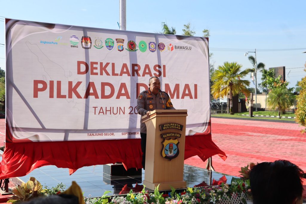 Kapolresta Bulungan Kombes Pol Agus Nugraha S.H., S.I.K., M.H mengatakan bahwa acara deklarasi ini bukan sekadar seremonial, namun sekali lagi bahwa ini adalah sebuah komitmen bersama untuk mewujudkan pemilihan kepala daerah yang aman, damai, dan tertib. “Deklarasi ini adalah wujud nyata kesiapan kita dalam mengawal jalannya Pilkada, agar setiap tahapannya berlangsung lancar, adil, dan demokratis,’’ tegas Kapolresta Bulungan sembari menyampaikan bahwa acara ini juga merupakan bagian dari rangkaian operasi “Mantap Praja Kayan – 2024 -2025”.